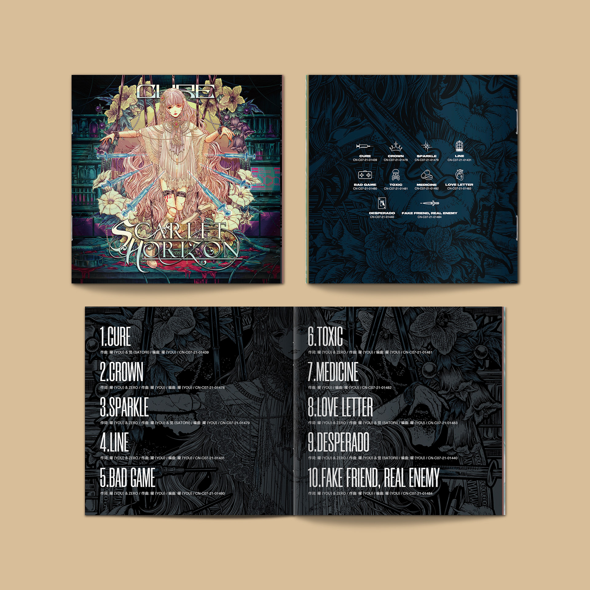 Visual kei deathcore, China Completed in 2021. Album layout, logo, merch and poster by me, cover by Isana Kagami.